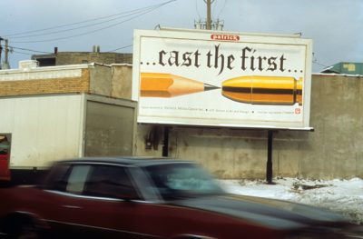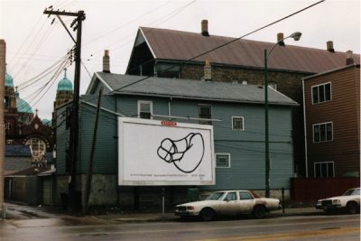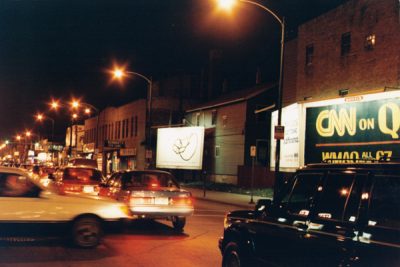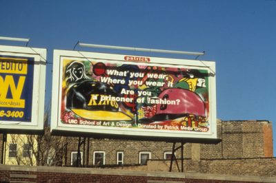 The idea for The Billboard Project grew out of a discussion about how UIC artists could exchange ideas with the community. John Terdich, a UIC graduate working at Patrick Media Group, suggested bringing his employer into the project. In keeping with Gallery 400’s desire to connect the arts to other parts of the Chicago community, The Billboard Project was conceived as an intersection—an educational and artistic exchange among businesses for the benefit of a wider metropolitan audience. Since the billboards will be seen by an audience that might not choose to visit the gallery, the billboards are a vital new avenue into communities, and they provide the participating artists with a unique opportunity to work within an uncommonly public and larger-than-life format.