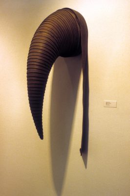 Donald Lipski and Sarah Whipple give minimal sculpture a run for its money. Overtly minimal in allowing their materials to speak for themselves, the work is covertly mimetic with Whipple ending seriality, significantly, at two, and Lipski letting the form of his elegant wall piece resonate with the previous incarnation of his raw materials—a conveyor belt from a perfume factory.