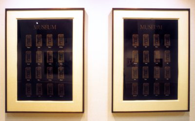 Art, or the artworld, is the subject of work by John Baldessari, Marcel Broodthaers, and William Wegman. Baldessari’s archetypically conceptual piece from 1971 was initially inscribed on gallery walls by students at the Nova Scotia College of Art and Design according to the artist’s telephoned instructions. Broodthaer’s history of art addresses issues of commodification while Wegman’s dog, Faye Ray, moves into position for her museum portrait.