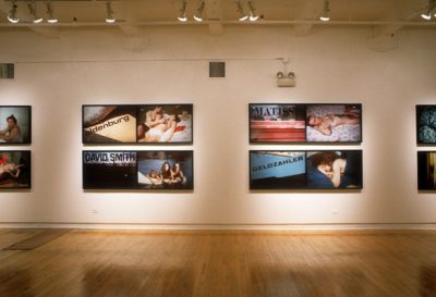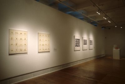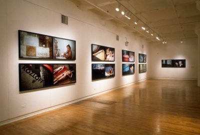 Prior to her premature death from lymphoma in 1996, Wilke created some of the most striking and influential artworks of the 20th century. Hannah Wilke: Works from 1965–92, her posthumous retrospective at Gallery 400, contains twelve works spanning the course of her artistic career. Displayed works include I Object: Memoirs of a Sugargiver, in which Wilke confrontationally mimicked Marcel Duchamp’s Etant Donnés, replacing the anonymous nude female with her own naked form. (The title is also a reference to Duchamp, who sometimes referred to himself as Merchand du Sel, or salt seller.) Masticated Box Sculpture, from the series S.O.S. Starification Object Series (1975), is part of a body of work Wilke made using pieces of chewed gum fashioned into small, elegant vulvas. Wilke affixed these chewing gum sculptures to her body, transforming them into small, puckered wounds, and then had herself photographed. In Masticated Box Sculpture, the “cunt/scar” forms, as Wilke called them, are displayed mounted on paper, in grids of sixteen pages on each panel. The exhibition of her work at Gallery 400 makes these canonical works available to a Chicago audience.