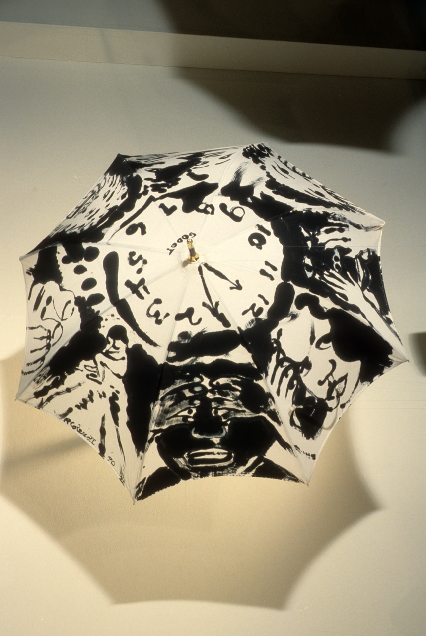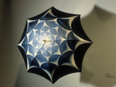 A Rain of Talent: Umbrella Art is an exhibition of umbrellas designed by a diverse group of artists, including sculptors, architects, ceramists, painters, and fabric artists. Each participant was given a plain umbrella to use as inspiration, and the resulting exhibit is a collection of various lighthearted and playful interpretations of a seemingly banal object. The exhibition originated at the Fabric Workshop in Philadelphia, and is the work of guest curator Patterson Sims (curator of modern art at the Seattle Art Museum) and the Fabric Workshop ’s founder and artistic director, Marion Stroud.