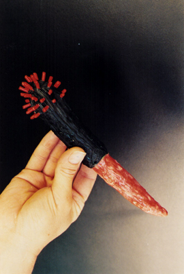 Weapons have existed as cultural artifacts since the beginning of time. Traditionally, museums make available presentations of these objects as cultural artifacts and testaments to a society. They are objects stripped of their context and tastefully exhibited as individual specimens in isolation. The weapons in this exhibition are recontextualized out of a sociocultural context and taken out of a neutral position. In his review of the exhibition, Fred Camper wrote, “Many of these thirty-five pieces by twenty-three artists are complex and thought provoking. Most of the best pieces acknowledge a fascination—sometimes the artist ’s own—with guns, or violence, even while condemning it. This is appealing to those of us who subscribe to the truth of Pogo ’s immortal aphorism: “We have met the enemy and he is us.”