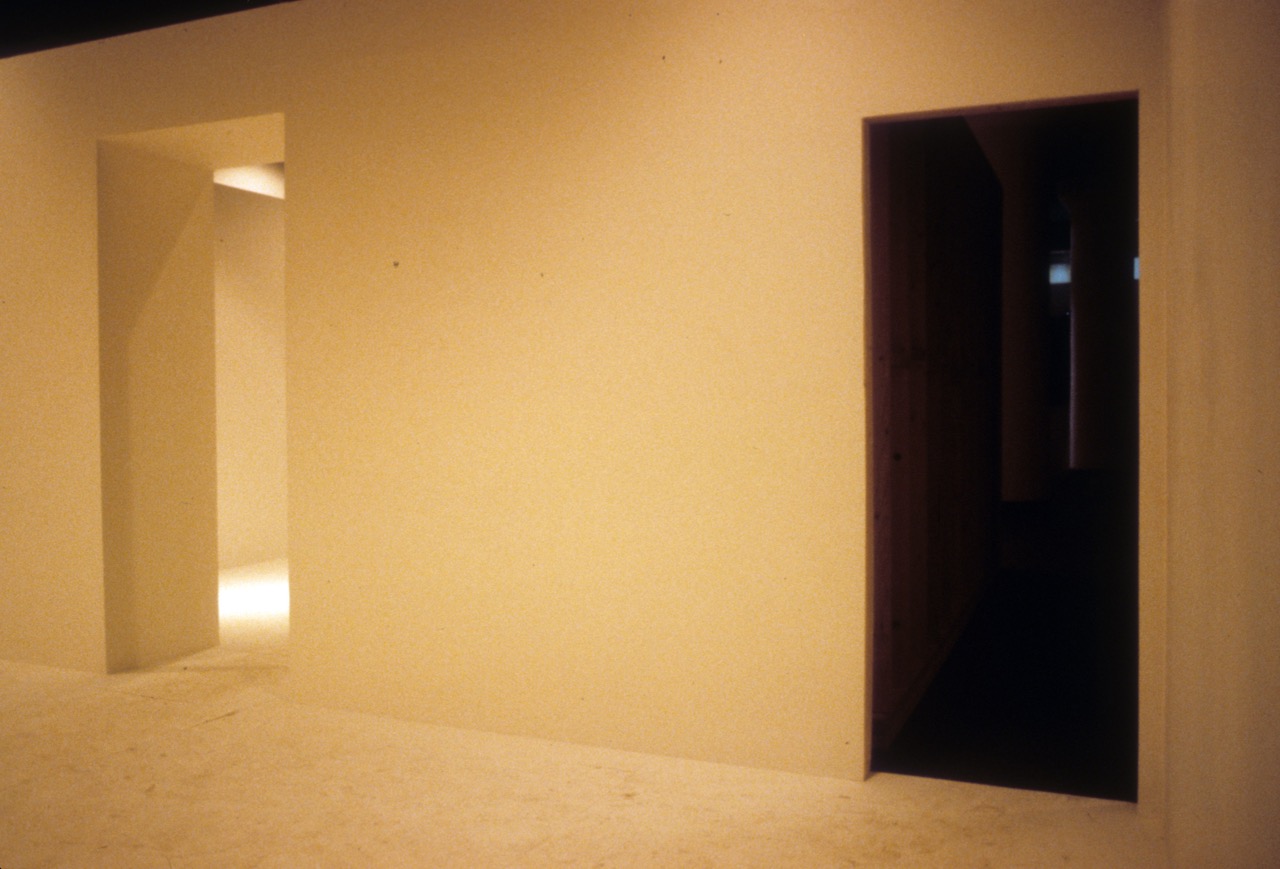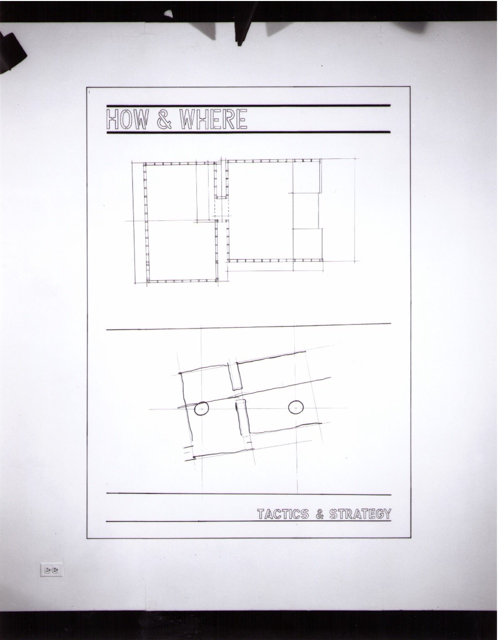 The framework for & how too is based on elements of transformation, exchange, displacement, and past representation that depends on associative meanings. The deconstruction of the space facilitates recognition of previous spaces and events. In recent installations, ABC’s investigations have addressed the excavation of a fictitious gallery/exhibition history. In past installations, Hill and Kester sanded parts of walls, uncovering wall drawings by Sol LeWitt, dozens of layered artist’s names announcing shows, and constellations of monthly nail holes. These projects have dealt with that which is hidden, which lies beneath gallery efforts to clear space from evidence of past events, freeing it for new ideas, experiences, and innovations. On this behalf, the collaborative uses the gallery wall to juxtapose fragmented structural elements of (hypothetical) exhibitions past with the cover of the newly repaired and, as yet, unadulterated white surface. This deconstruction successfully recontexualizes the viewer ’s recognition of pre-existing spaces or events, hence revealing the relationship between structure and memory and initiating a dialogue concerning the origin of one and the conclusion of the other. & how too seeks to build upon this rhetoric between reflection and recollection as well as to further reveal the considerable affinity between the construction of intellectual notions and physical structures.
