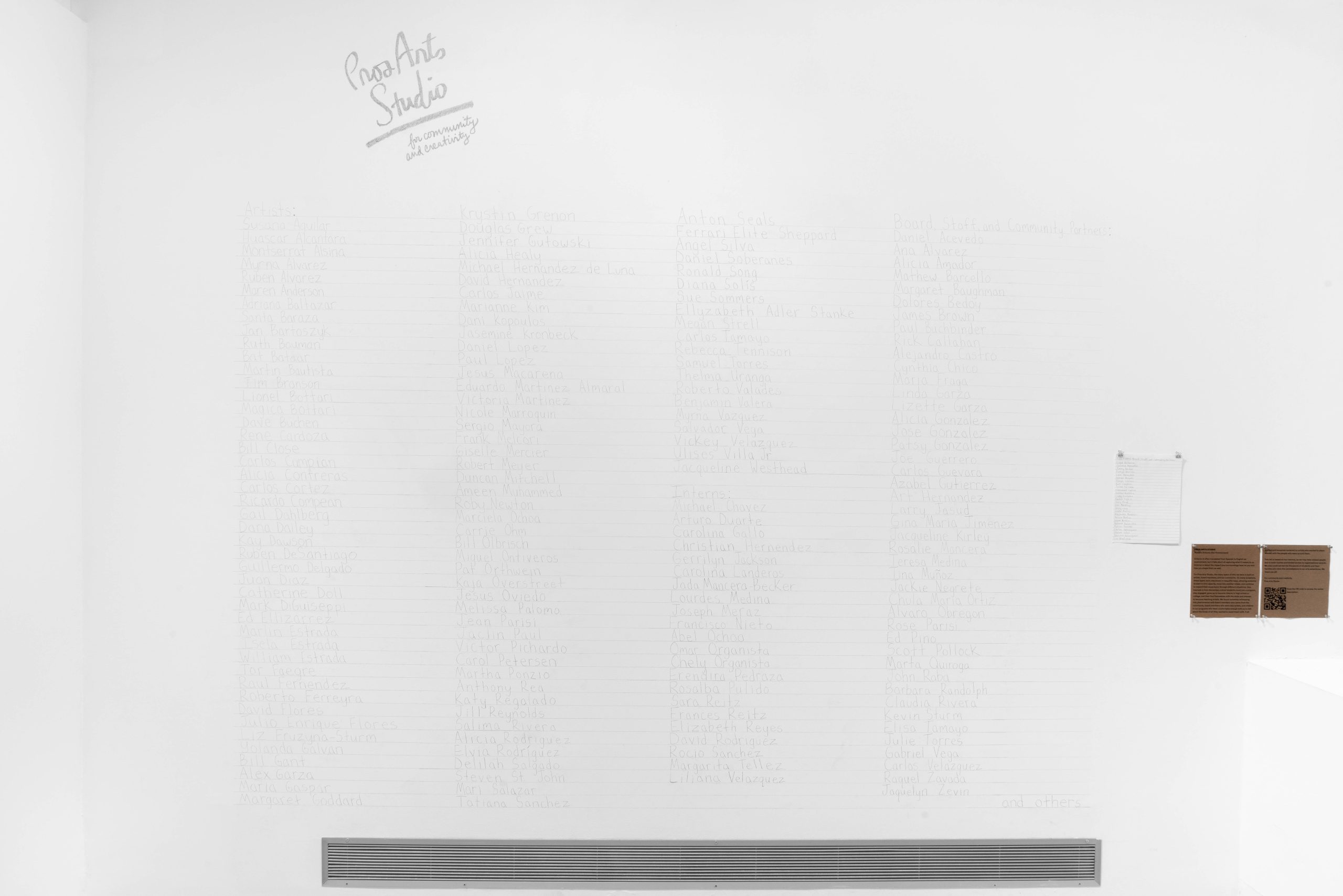 Anchoring these new works are a large-scale painted sculpture/performance set of a lavanderia (laundromat) from the Pros Arts archive; an ofrenda (offering or altar) honoring Pros Arts artists and collaborators who have died; an installation marking the hundreds of collaborators across Pros Arts’ history; and a collection of posters, cards, photographs, and more from the Pros Arts archive. By combining archival materials and newly commissioned artworks, Imagination Doctors inventively evoke the broad reach and lasting impact of Pros Arts Studio’s work in art, education, and community building.