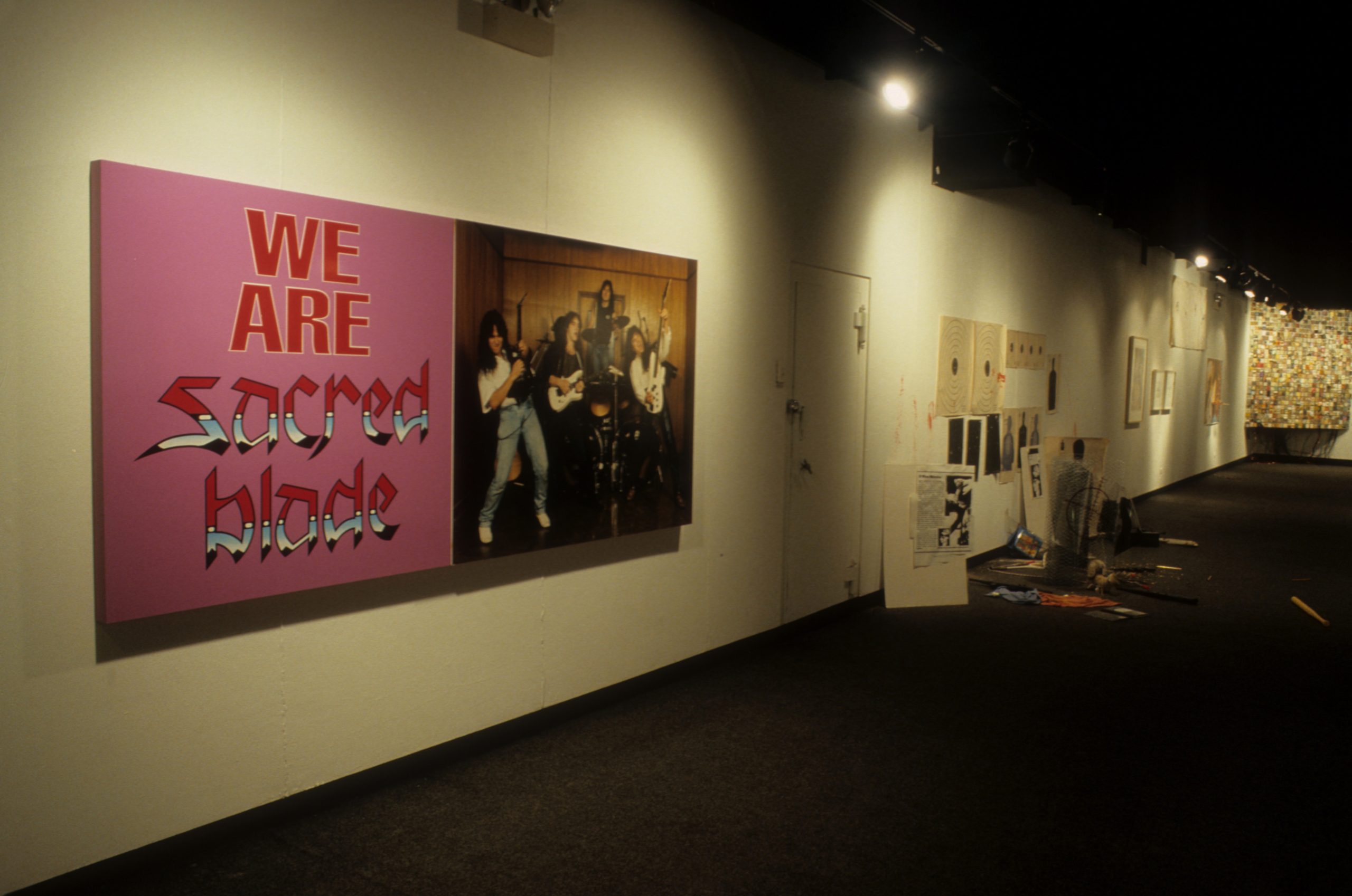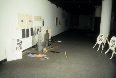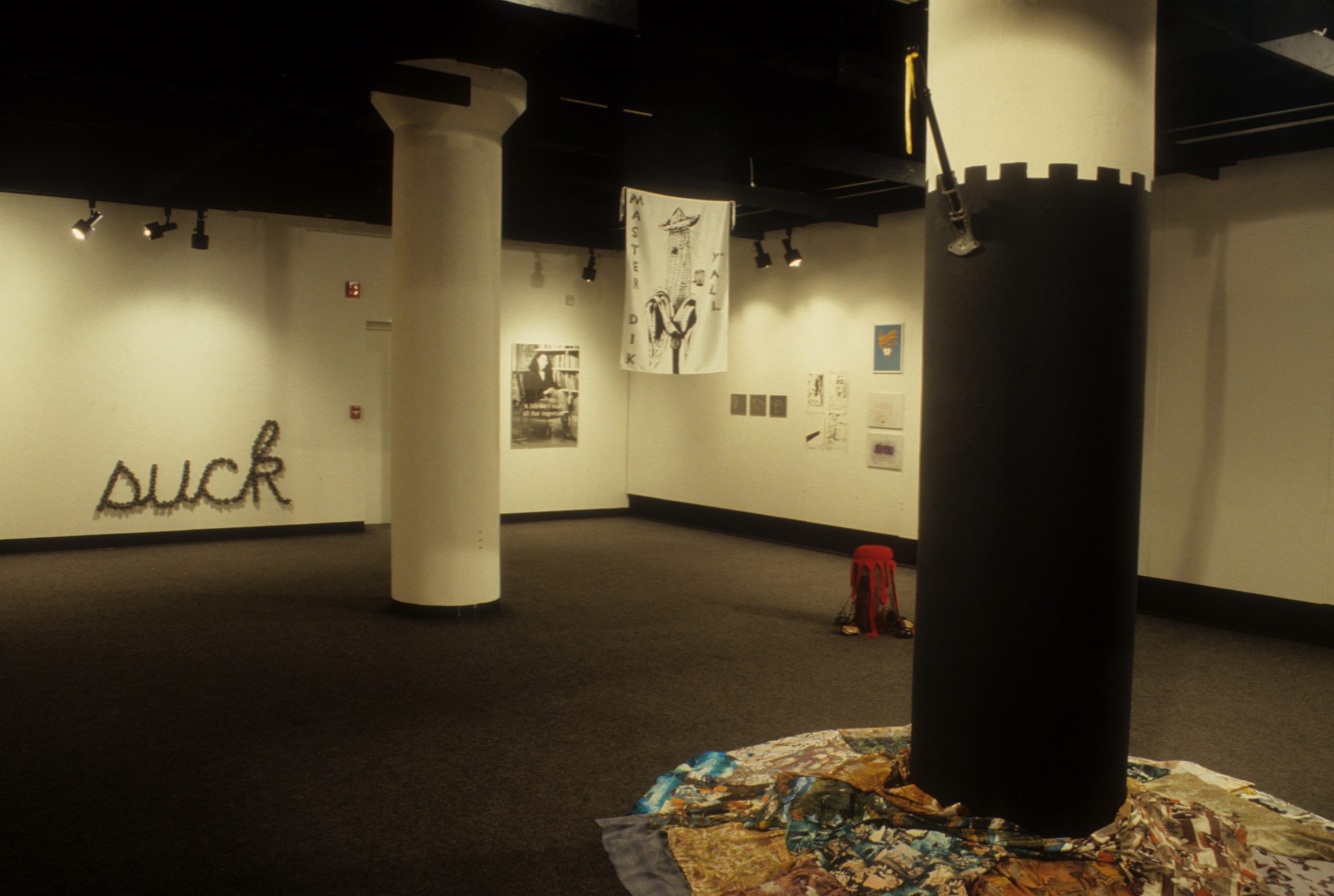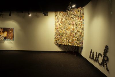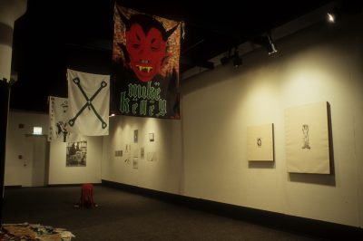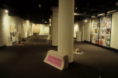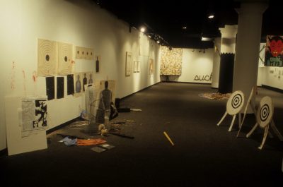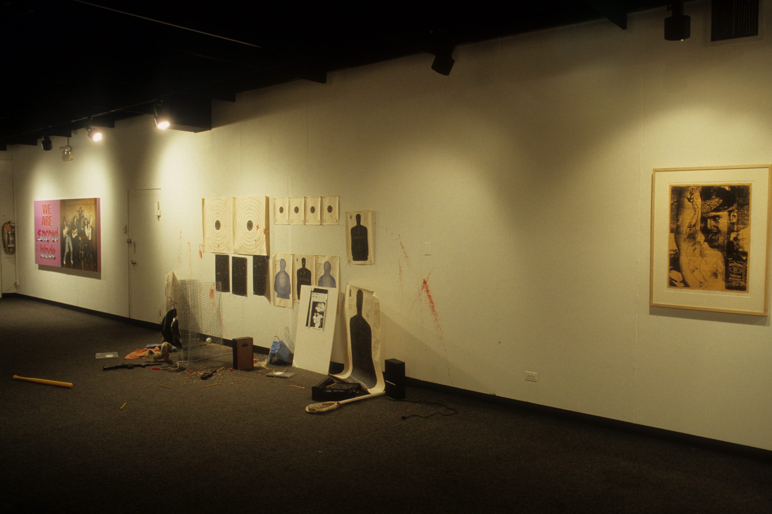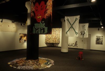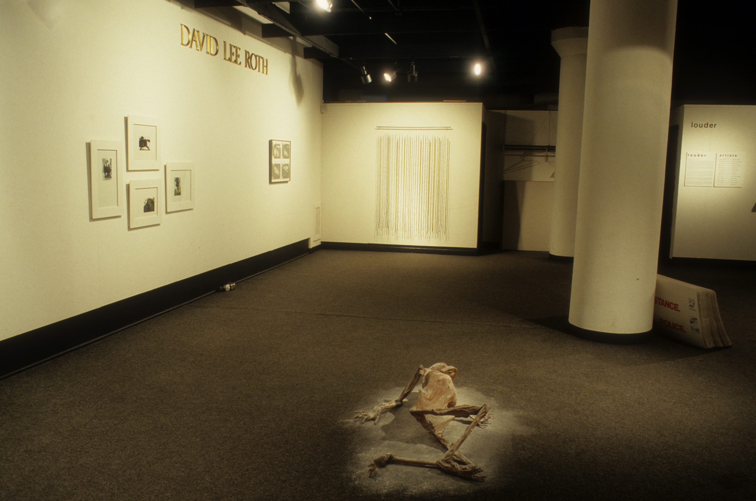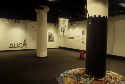 The work of the twenty-four artists in Louder, a group exhibit curated by Chicago critic Kathryn Hixson and artist and UIC professor Tony Tasset, deals with the adolescent experiences of coming of age and self-definition. As a seeming reaction to various trends within the art world, and in the societal and economic context of the United States in the early 1990s, a number of artists have produced work that draws from the peculiarly awkward stage of impending adulthood: adolescence. The work relies on representations or references to the body as the site of evolving sexual and societal definition—not presenting a “responsible” or “politically correct” whole adult self, but rather an adolescent one that refuses to be repressed. The work revolves around the projected image of the self as opposed to a behavioral or aesthetic authority, and sometimes aggressively assaults institutional legitimating structures. As these artists assert newly formed self-definitions, they refuse to suppress the rebellious exuberance felt in the gap between naïveté and responsibility. Much of this art references the cult of the body combined with the cult of the gang, as well as the cult of pop music, with all of its associative bonding. The work is not a critique (per se) of the existing political and art situation, but is simply a usurping of power, a violent bash when the parents are out of town, complete with booze, girls, boys, and loud music. It is aggressively nostalgic, explicating a wish for a renewable youthfulness, not for its rosy-cheeked innocence but for its harsh, demanding immediacy—the thrill of that great fall from grace, the intoxicating turbulence of puberty.