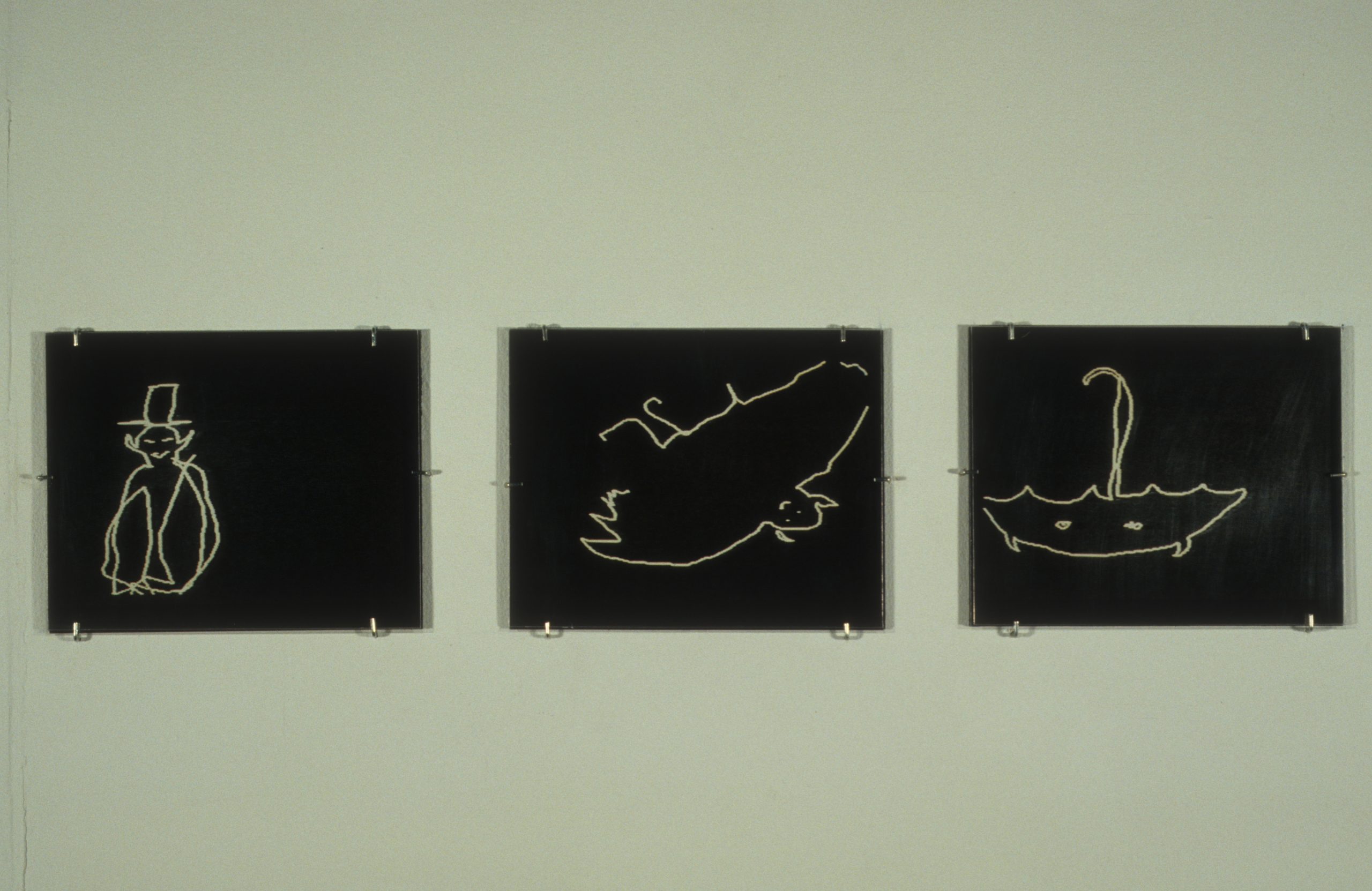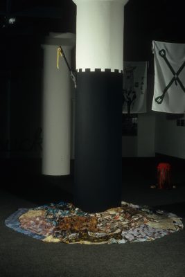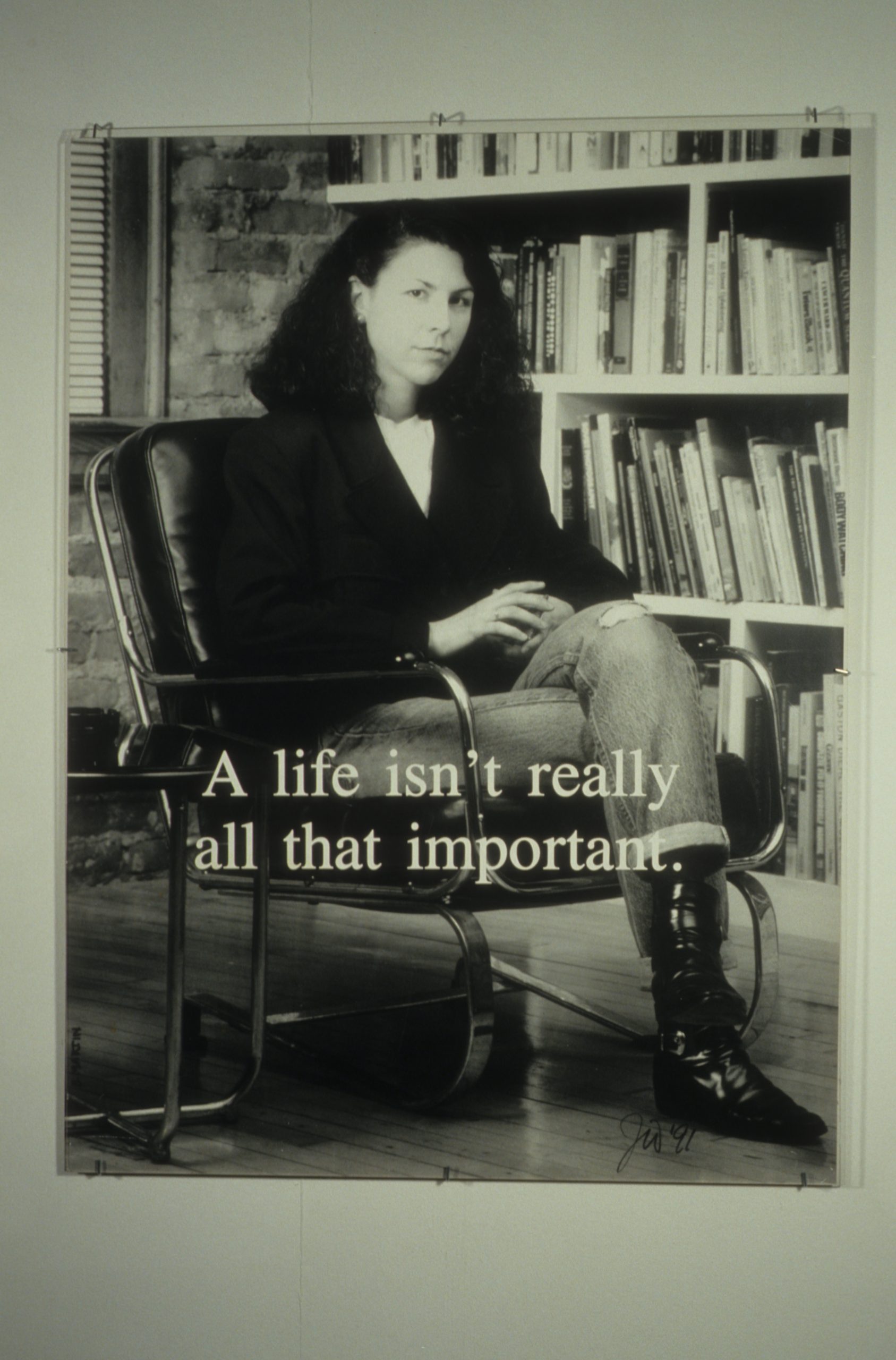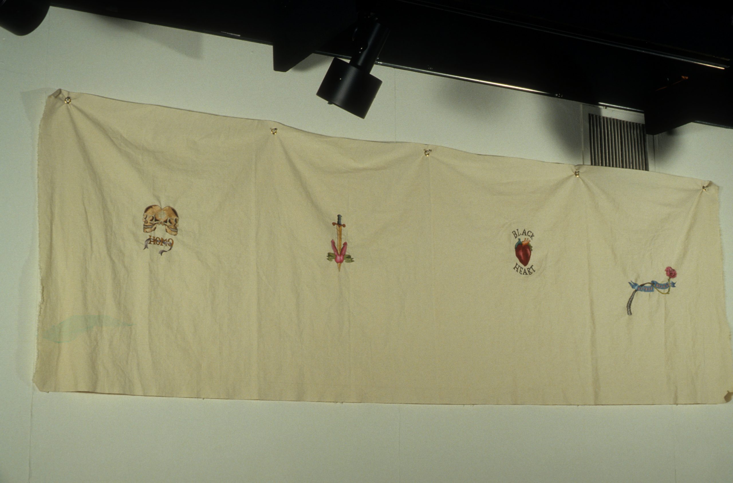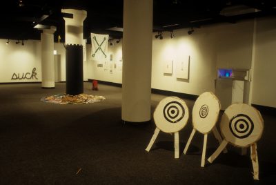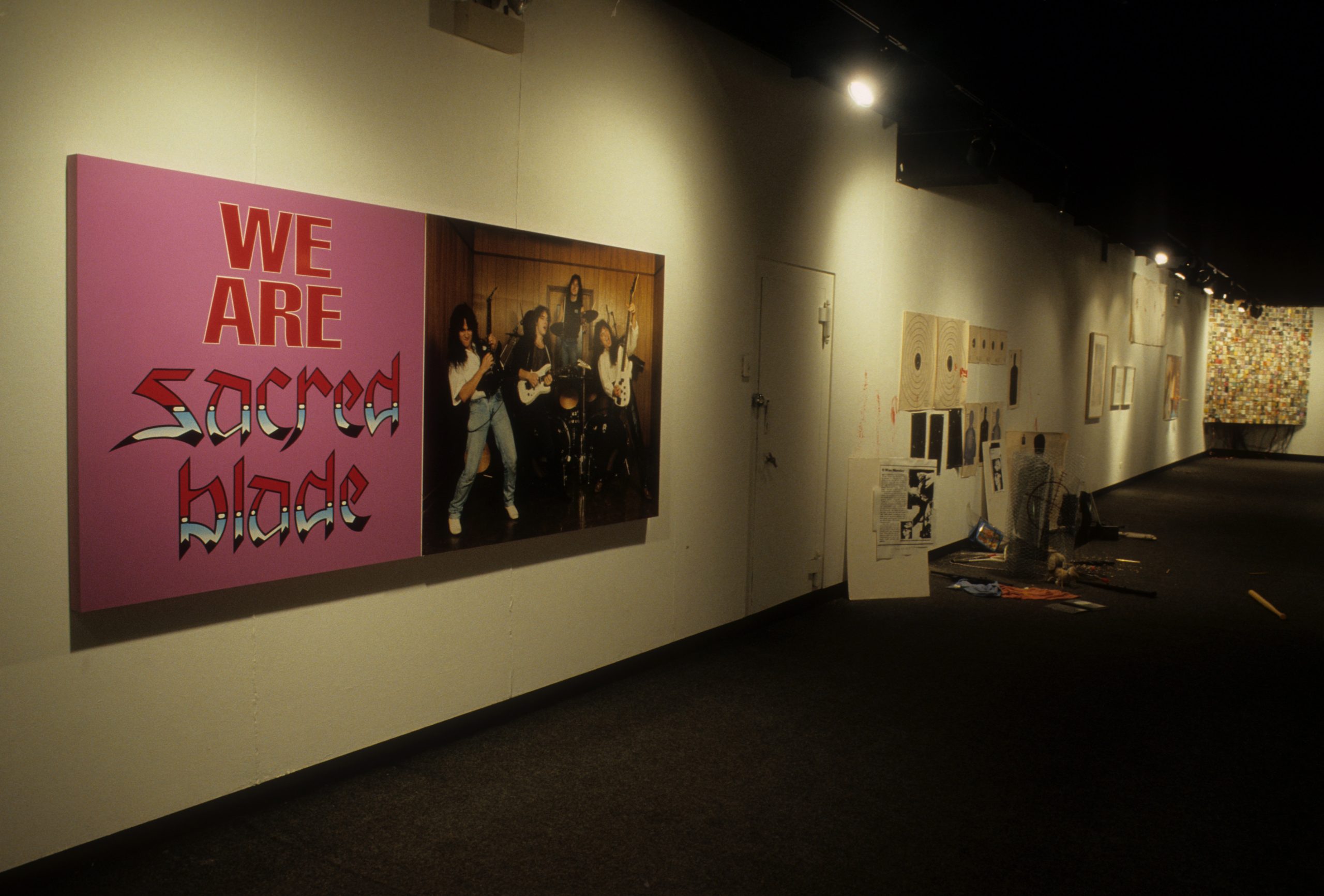 The work of the twenty-four artists in Louder, a group exhibit curated by Chicago critic Kathryn Hixson and artist and UIC professor Tony Tasset, deals with the adolescent experiences of coming of age and self-definition. As a seeming reaction to various trends within the art world, and in the societal and economic context of the United States in the early 1990s, a number of artists have produced work that draws from the peculiarly awkward stage of impending adulthood: adolescence. The work relies on representations or references to the body as the site of evolving sexual and societal definition—not presenting a “responsible” or “politically correct” whole adult self, but rather an adolescent one that refuses to be repressed. The work revolves around the projected image of the self as opposed to a behavioral or aesthetic authority, and sometimes aggressively assaults institutional legitimating structures. As these artists assert newly formed self-definitions, they refuse to suppress the rebellious exuberance felt in the gap between naïveté and responsibility. Much of this art references the cult of the body combined with the cult of the gang, as well as the cult of pop music, with all of its associative bonding. The work is not a critique (per se) of the existing political and art situation, but is simply a usurping of power, a violent bash when the parents are out of town, complete with booze, girls, boys, and loud music. It is aggressively nostalgic, explicating a wish for a renewable youthfulness, not for its rosy-cheeked innocence but for its harsh, demanding immediacy—the thrill of that great fall from grace, the intoxicating turbulence of puberty.