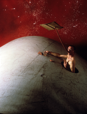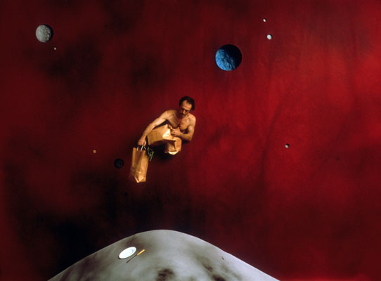 Boyd Webb, originally of New Zealand but now living and working in Bristol and London, fabricates and photographs patently artificial, whimsical outer space landscapes in which small mundane objects and materials loom fantastic and larger than life, and in which the artist himself often appears. Demonstrating the artist’s imaginative range, Scenes and Songs from Boyd Webb, a videotape, was also screened during the exhibition.