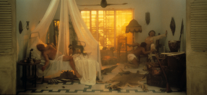 Hatty Van Zak, originally working in Sweden and later in New York, received considerable attention after her solo New York debut in 1985. Gallery 400 presented two of the Twelve Hotel Rooms, which are giant-sized color studio prints of elaborately staged tableaux – in which episodes of sexual, colonialist, and imperialist exploitation are played out in ten different locations across time and space (e.g. Palermo, 1914). The mural-sized cibachromes parody contemporary sexual and narrative clichés, the fetishization of history, and the ingratiating methods of commercial photography.