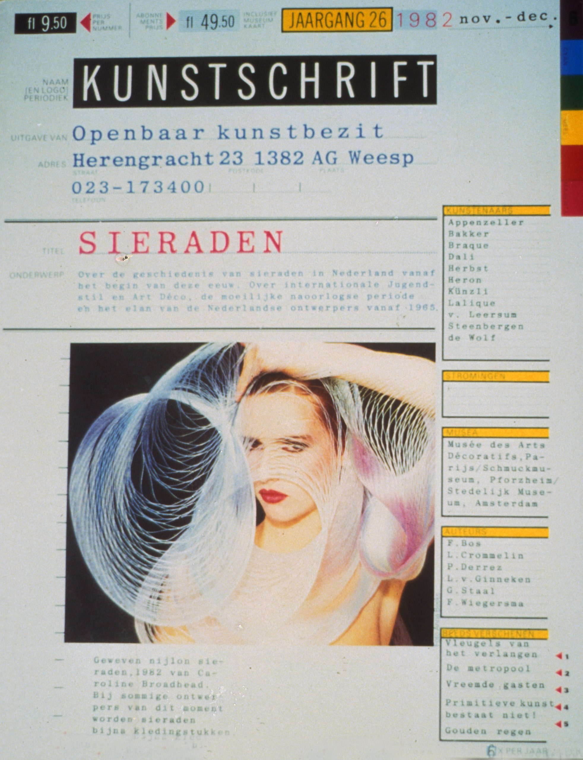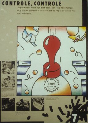 The core of the Gallery 400 show came from the collection of Katherine McCoy, Professor of Design at the Cranbrook Academy of Art. The pieces from her collection were organized into an exhibition by Ms. McCoy and Doug Kisor of the Eastern Michigan University Department of Art (shown at Eastern Michigan University and Carnegie-Mellon University). Gallery 400 added further materials, a mini-exhibition focusing on the production of Hard Werken of Rotterdam, in consultation with Dutch designer Kees de Gruiter and Victor Margolin, UIC Professor of Design History. A poster designed by Hard Werken and produced by Gallery 400 publicized the show and extended the collaboration between the gallery and the design firm.
