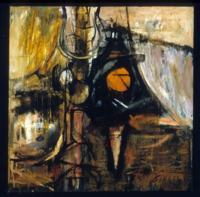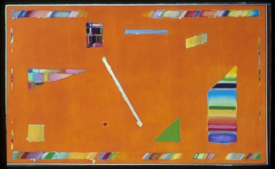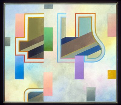 Roland Ginzel, born in Lincoln, Illinois, has been an inspiring force in the Chicago art world for decades. A graduate of the School of the Art Institute, Ginzel returned to the city after graduate school at Iowa State University and a year’s study in London. Ginzel’s active exhibition record dates back to the 1950s. He first showed at the Art Institute’s Chicago and Vicinity exhibition in 1956 and won prizes at this and subsequent C&Vs. During the 1950s and 1960s, Ginzel and his wife, Ellen Lanyon, were central players in such artists’ organizations as the Hyde Park Art Center. He was chosen as one of 14 artists featured in the Museum of Contemporary Art’s 1976 Abstract Art in Chicago; this show was an attempt to give “equal time” to non-Imagist work and to demonstrate the range and diversity of the Chicago School. Ginzel’s works on paper and canvas have been highlighted in major national and international exhibitions, including the 1976 Whitney Biennial. The artist’s paintings, drawings, and prints are in major museums, corporate, and private collections. His large, colorful canvases explore a progressive range of problems, including the juxtaposition of hard-edged color forms with free-floating painterly planes, systematic stenciling, and surrealism crossed with abstraction.