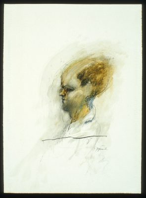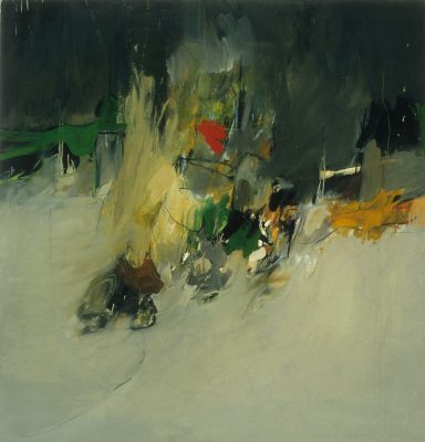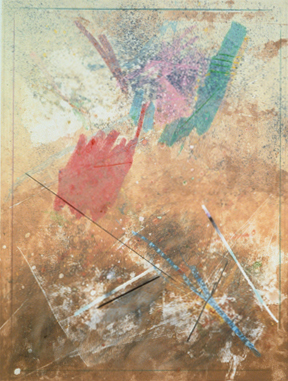 The Gallery 400 exhibition presented an evolutionary picture of Ginzel’s oeuvre beginning with the 1950s. His drawings and paintings – highlighting expressionistic draftsmanship – occasionally reveal similarities in palette and subject matter to Leon Golub’s humanistic works of the same decade. In the 1960s, Ginzel settled into the abstract idiom that has become his signature. His large, colorful canvases explore a progressive range of problems, including the juxtaposition of hard-edged color forms with free-floating painterly planes, systematic stenciling, and surrealism crossed with abstraction. Recently, Ginzel’s paintings have waxed lyrical—becoming active fields of color and brushwork.