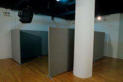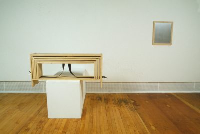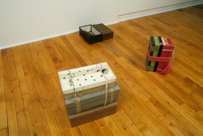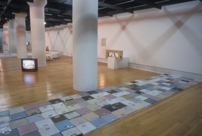 The Ecstasy of Limits is a group exhibition, curated by Yvette Brackman, which explores themes of power, desire, and limitation. In Brackman ’s words, “The Ecstasy of Limits considers desire as an external framework that orders and manipulates the surrounding environment. This exhibition examines issues of desire and control as they are played out in social, physical, familial, and sexual forms of power.” As the title might suggest, the works in the exhibition test and highlight boundaries, both for the artworks and for the audience members, playing on fears and keeping the audience on the edge of discomfort. Annetta Kapon ’s Floor Scale forces the gallery viewers to step on one of the many bathroom scales tiled around the entrance to the gallery, publicizing their potential insecurities. For Routes 1 & 9 North, Jane and Louise Lisbon allowed a stranger to hypnotize them in a motel room, surrendering themselves both to the hypnotist and the viewers, allowing themselves to slip into a state in which their own self-imposed boundaries no longer apply. Self-imposed limitations are also at work in two video pieces: Lucy Gunning’s Climbing Around My Room, in which a girl in a red dress slowly climbs around a room without touching the ground; and Tony Tasset’s Location Performance, in which the artist lies face down on the gallery floor, performing a deliberate anticlimax and presenting an endurance challenge both to the artist and the viewer.