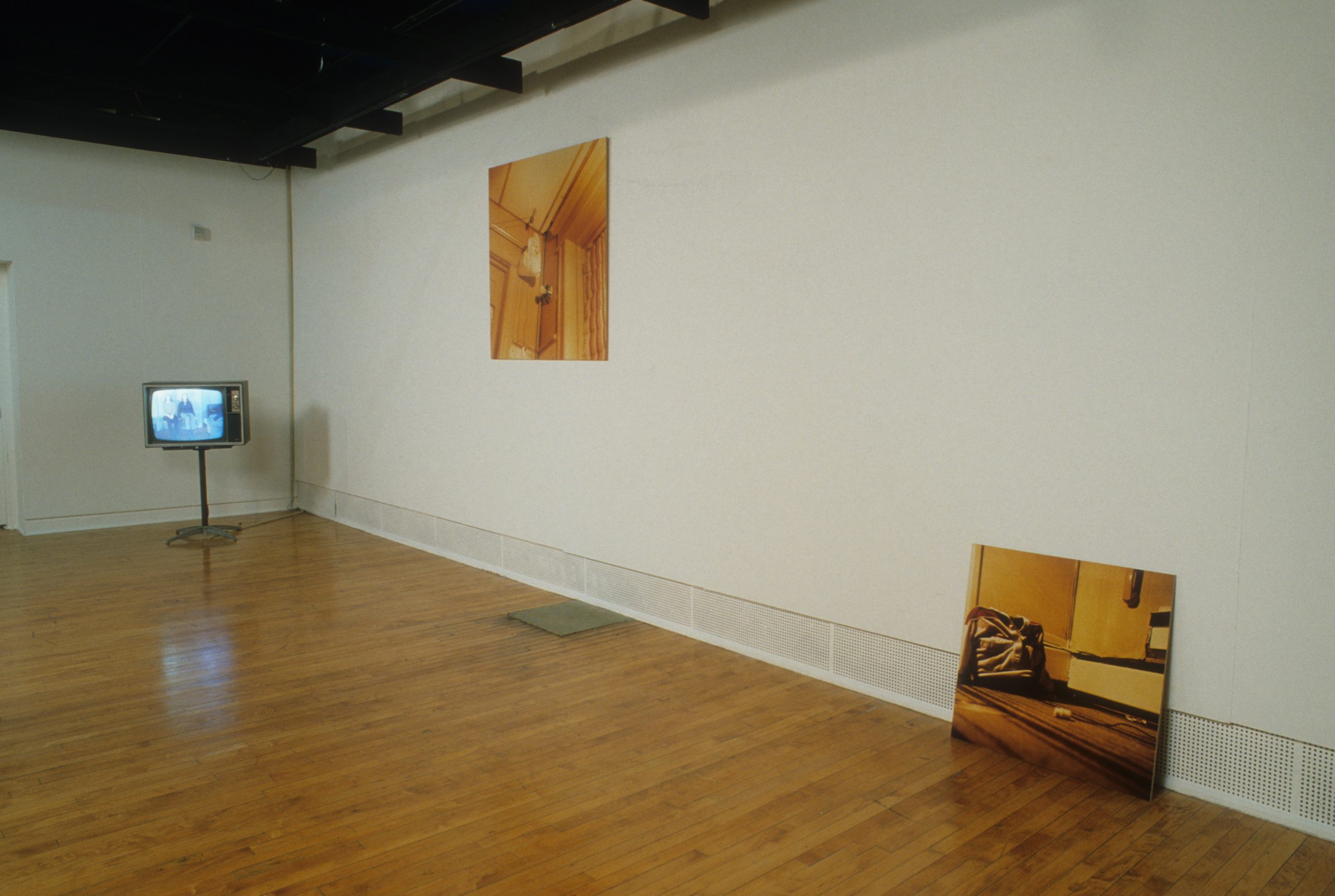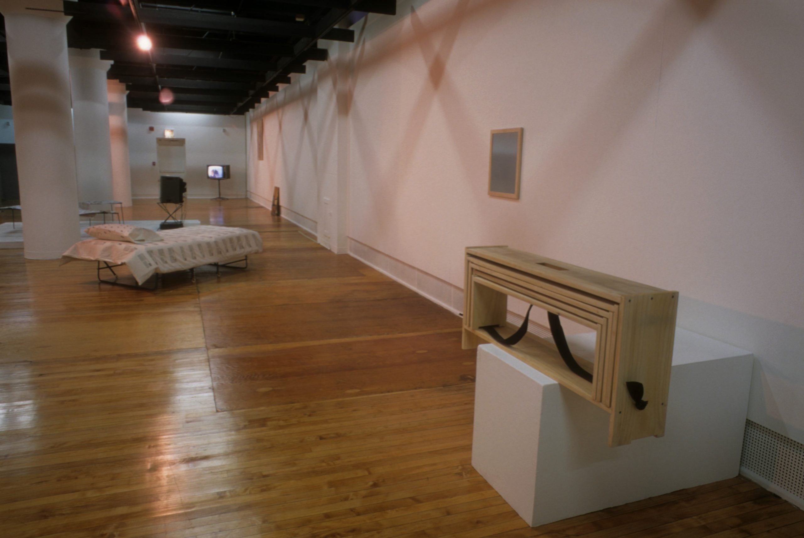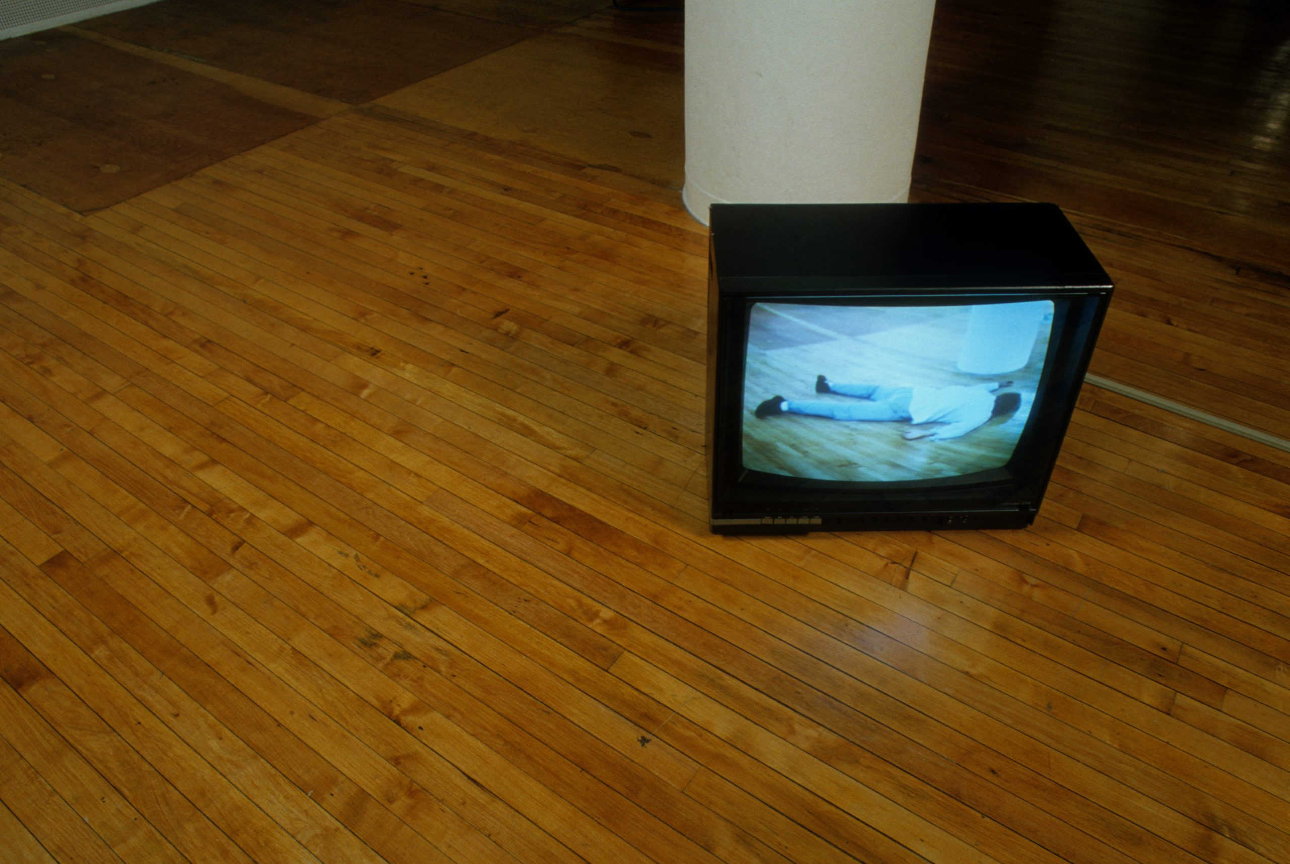 The Ecstasy of Limits is a group exhibition, curated by Yvette Brackman, which explores themes of power, desire, and limitation. In Brackman ’s words, “The Ecstasy of Limits considers desire as an external framework that orders and manipulates the surrounding environment. This exhibition examines issues of desire and control as they are played out in social, physical, familial, and sexual forms of power.” As the title might suggest, the works in the exhibition test and highlight boundaries, both for the artworks and for the audience members, playing on fears and keeping the audience on the edge of discomfort. Annetta Kapon ’s Floor Scale forces the gallery viewers to step on one of the many bathroom scales tiled around the entrance to the gallery, publicizing their potential insecurities. For Routes 1 & 9 North, Jane and Louise Lisbon allowed a stranger to hypnotize them in a motel room, surrendering themselves both to the hypnotist and the viewers, allowing themselves to slip into a state in which their own self-imposed boundaries no longer apply. Self-imposed limitations are also at work in two video pieces: Lucy Gunning’s Climbing Around My Room, in which a girl in a red dress slowly climbs around a room without touching the ground; and Tony Tasset’s Location Performance, in which the artist lies face down on the gallery floor, performing a deliberate anticlimax and presenting an endurance challenge both to the artist and the viewer.