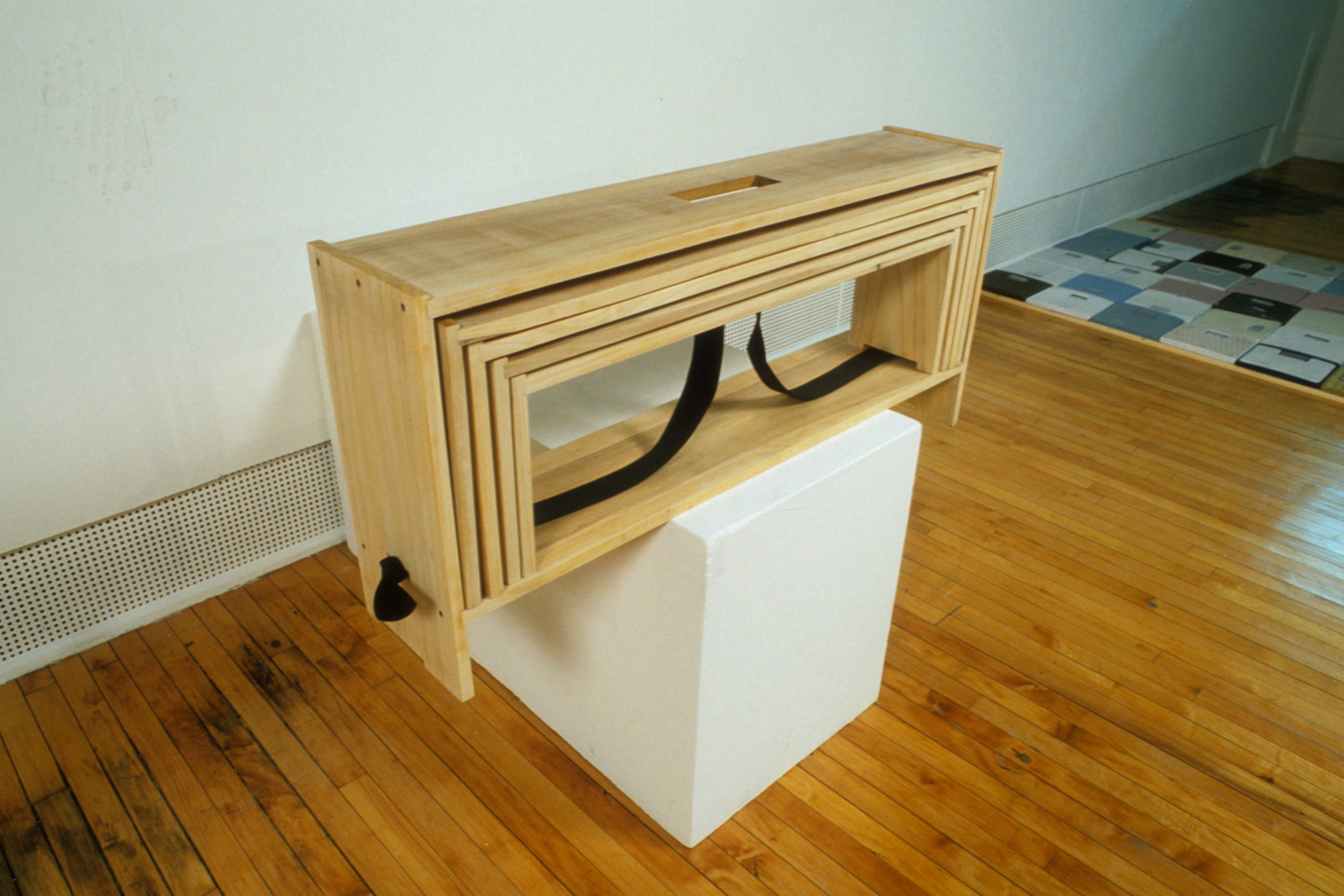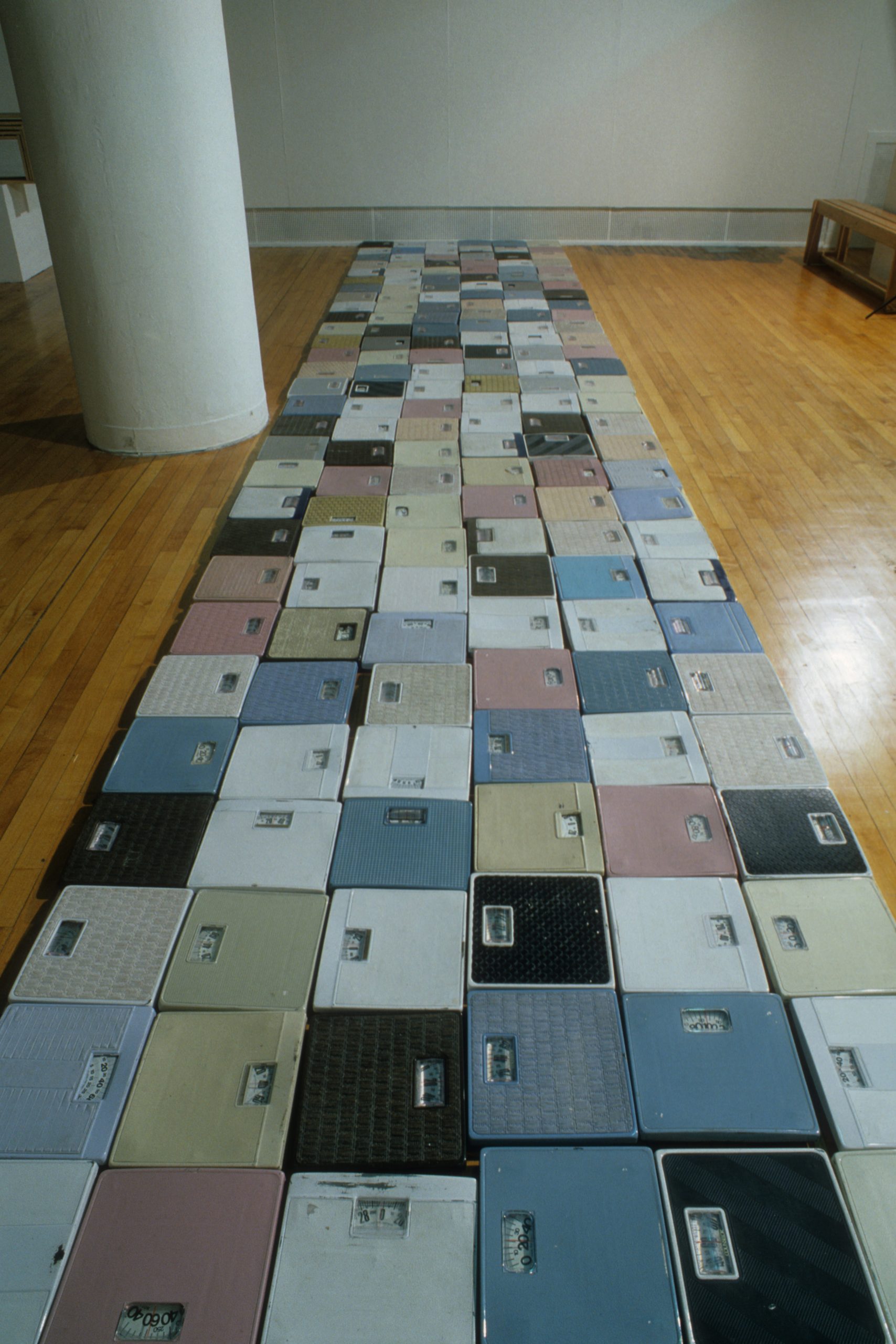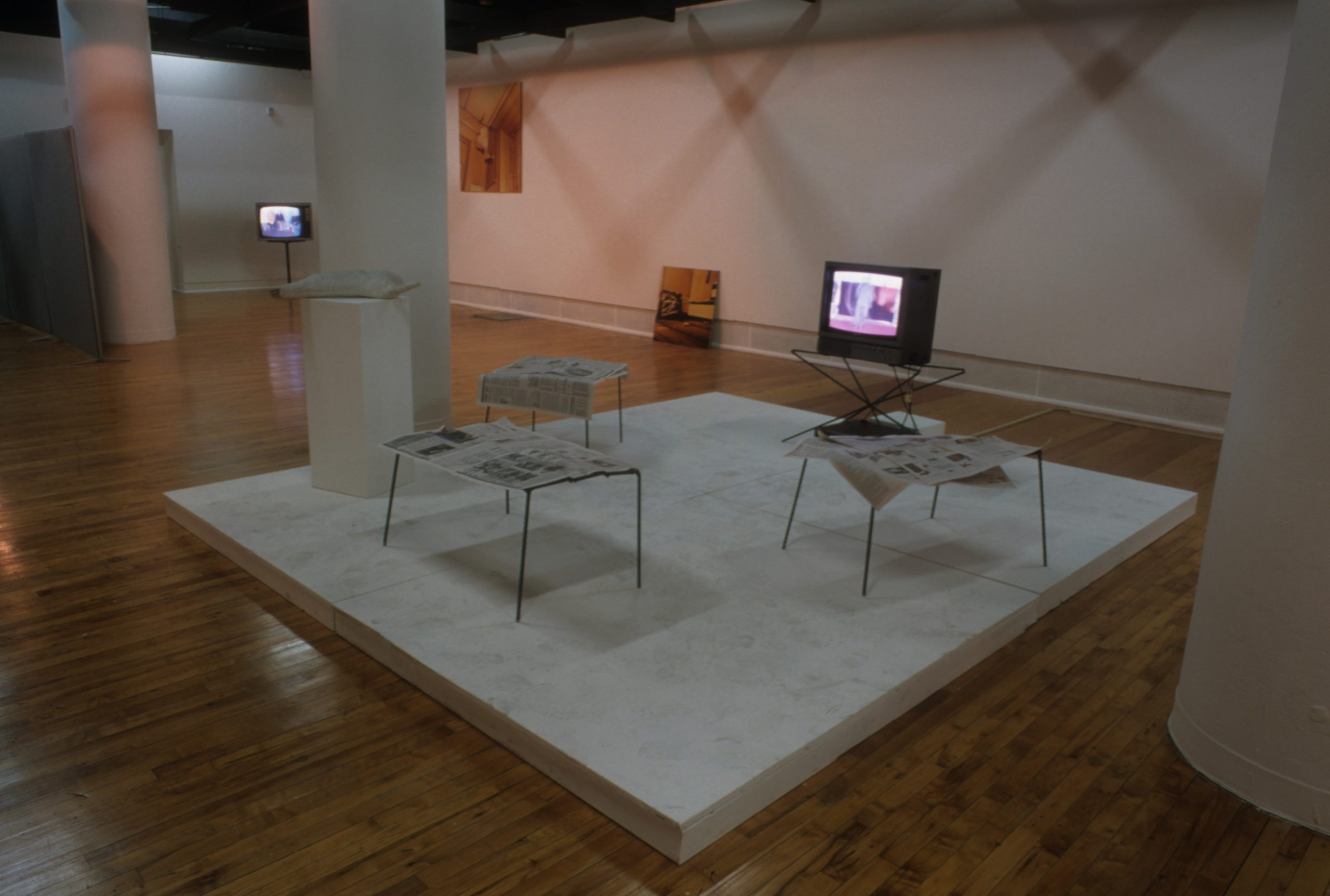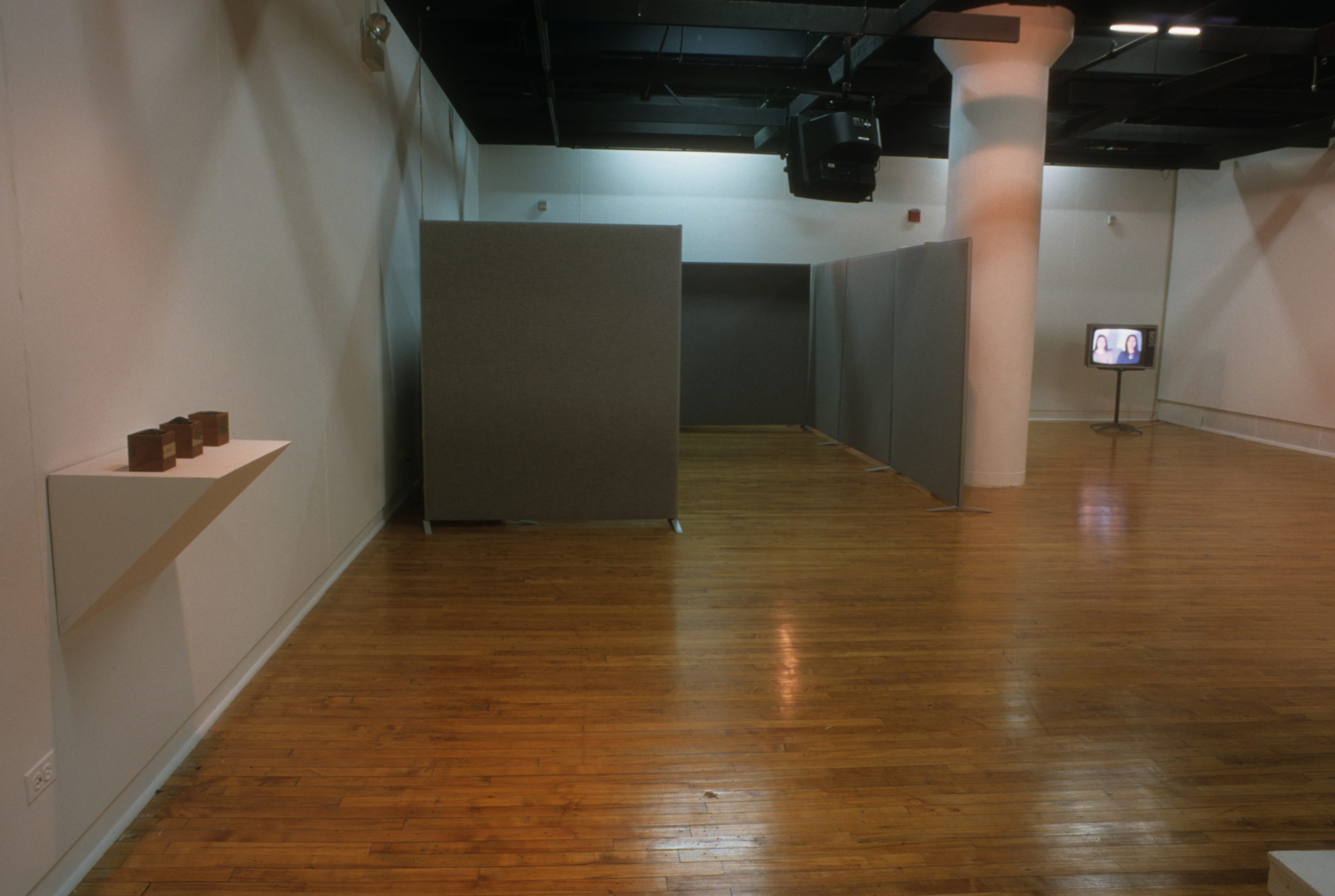 The Ecstasy of Limits is a group exhibition, curated by Yvette Brackman, which explores themes of power, desire, and limitation. In Brackman ’s words, “The Ecstasy of Limits considers desire as an external framework that orders and manipulates the surrounding environment. This exhibition examines issues of desire and control as they are played out in social, physical, familial, and sexual forms of power.” As the title might suggest, the works in the exhibition test and highlight boundaries, both for the artworks and for the audience members, playing on fears and keeping the audience on the edge of discomfort. Annetta Kapon ’s Floor Scale forces the gallery viewers to step on one of the many bathroom scales tiled around the entrance to the gallery, publicizing their potential insecurities. For Routes 1 & 9 North, Jane and Louise Lisbon allowed a stranger to hypnotize them in a motel room, surrendering themselves both to the hypnotist and the viewers, allowing themselves to slip into a state in which their own self-imposed boundaries no longer apply. Self-imposed limitations are also at work in two video pieces: Lucy Gunning’s Climbing Around My Room, in which a girl in a red dress slowly climbs around a room without touching the ground; and Tony Tasset’s Location Performance, in which the artist lies face down on the gallery floor, performing a deliberate anticlimax and presenting an endurance challenge both to the artist and the viewer.